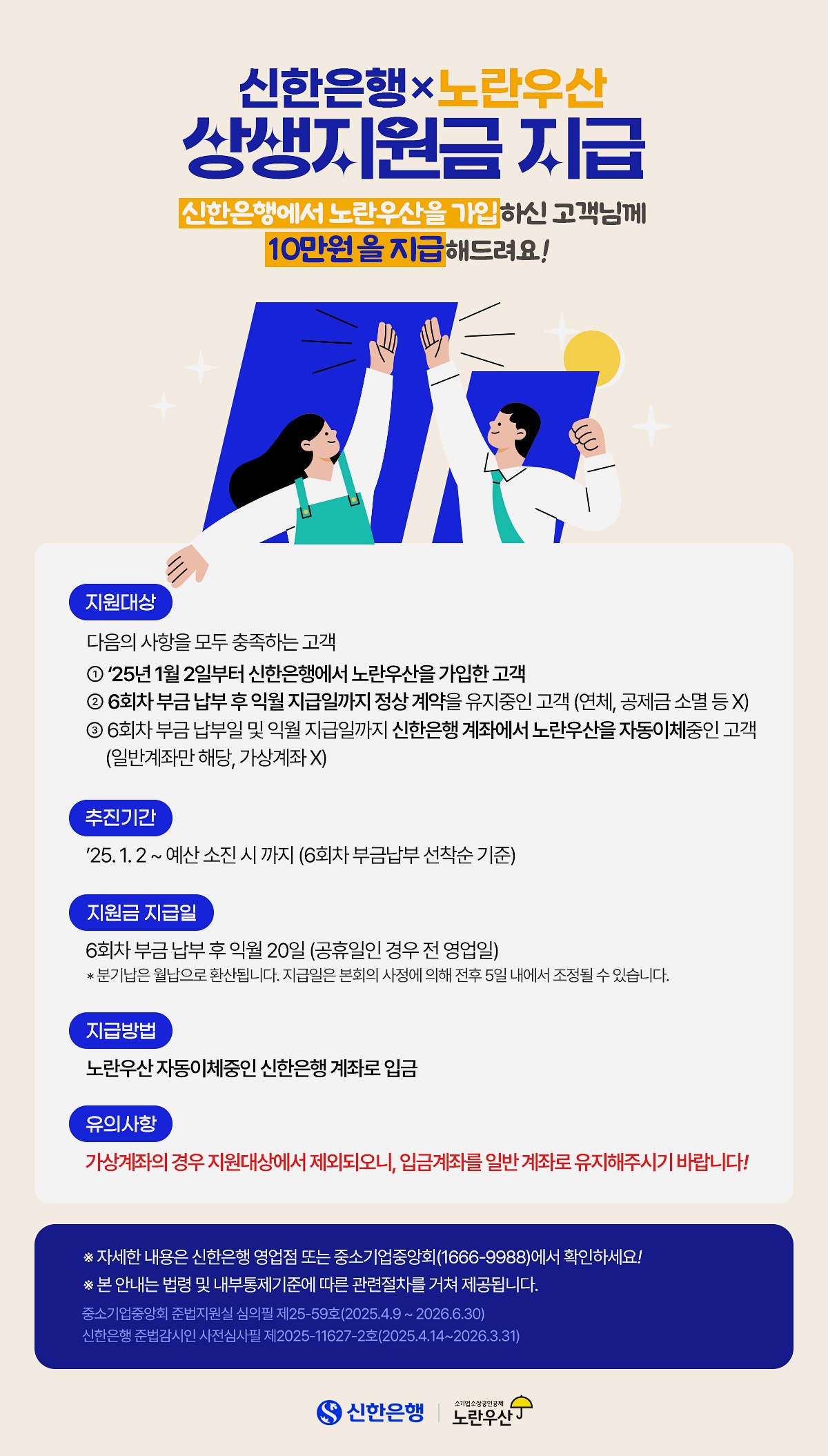 그리고 신한은행에서 노란 우산울 가입하신 분들께 상생지원금을 드립니다